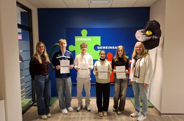 Elf SchülerInnen der Schule am Schloss haben sich im vergangenen Halbjahr zu Medienbuddies ausbilden lassen. Nun sind sie bereit, ihren Mitschülern bei Fragen im Umgang mit den digitalen Medien weiter zu helfen.