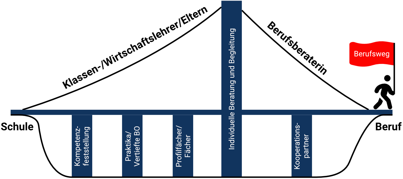 Unsere Schule möchte ihren Schülerinnen und Schülern helfen, Ängste gegen den Einstieg in die Berufswelt abzubauen, gleichzeitig sie dazu motivieren, Herausforderungen anzunehmen und mit Neugier ihren weiteren Weg anzutreten. Die Berufswelt verändert sich stetig. Um unsere Ziele dauerhaft verfolgen und erreichen zu können, evaluieren wir unser Konzept regelmäßig und passen es, wenn möglich und nötig, den jeweiligen Gegebenheiten und Veränderungen in der Berufswelt an.