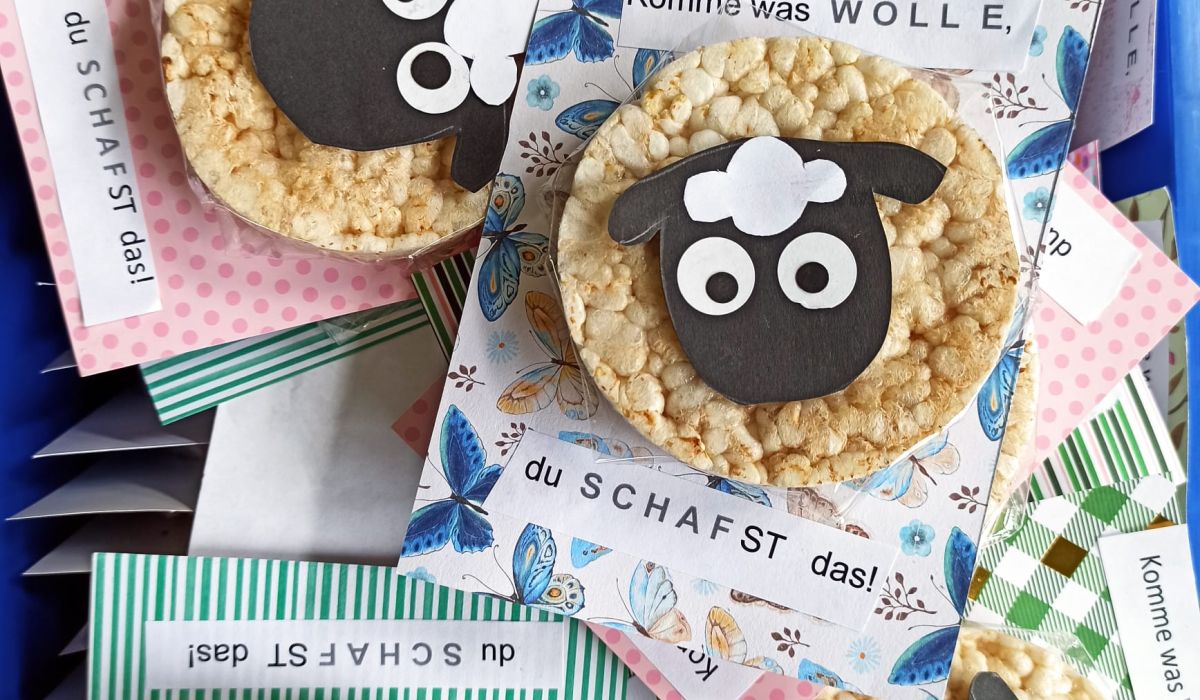 Die AG Buntes Treffen und SchülerInnen der Von Velen Schule haben für ein bisschen Glück gesorgt. Jeder Abschlussschüler und jede Abschlussschülerin findet heute einen kleinen selbstgebastelten Glücksbringer am Prüfungsplatz.
