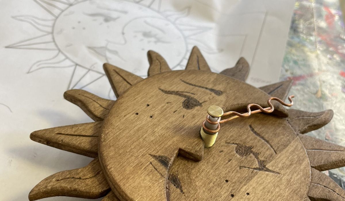 Zur Umsetzung kommen eine Vielzahl an Arbeitstechniken zum Einsatz: Zunächst wurde das Design der Uhr sorgfältig geplant, eine technische Zeichnung angefertigt um die Funktionalität und das ästhetische Erscheinungsbild in Einklang zu bringen. Anschließend ging es ans Schleifen, Bohren und Beiteln, um die Holzoberflächen zu glätten und die einzelnen Teile passgenau zu fertigen. Auch das Zeichnen und Messen war essentiell, um präzise Teile für das Uhrwerk und die Dekoration zu erstellen.